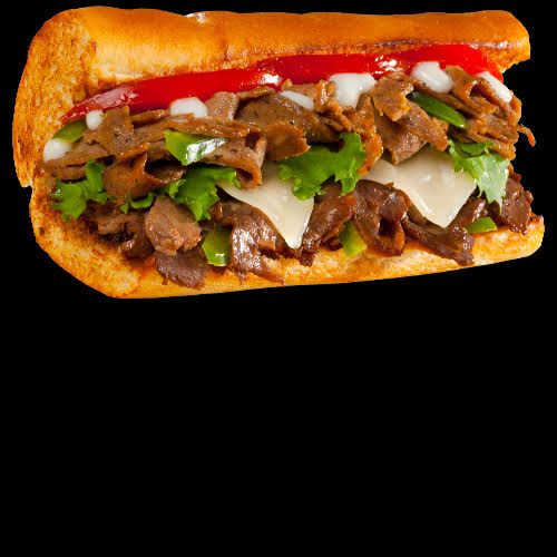 Succulent strips of real beef steak topped with mounds of thinly sliced strips of juicy donair meat topped with your choice of cheese, veggies and sauce.